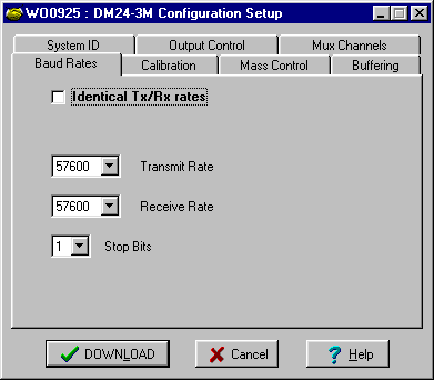 This tab allows the setting of the line speed for the main serial output.