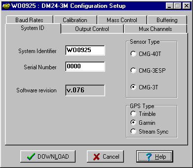 System Identifier and Serial Number: The digitiser type is identified by its system identifier and serial number. These two parameters are stored as the first two 32-bit fields in the header of each data and status block generated by the digitiser, in order to indicate the block's origin. Each of these parameters consists of 6 alphanumerics encoded as base 36 numbers. On delivery from the factory, the system identifier and the serial number are, respectively, set to the GSL works order number and the seismometer’s serial number. Either parameter can be reset to any convenient combination of letters and numbers, such as an abbreviation of your institution and the deployment site code.