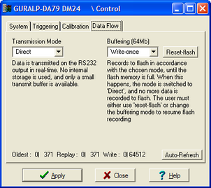 The Buffering legend also displays the amount of Flash memory present in your digitizer. In the example screen-shot above, this is 64 Mb.