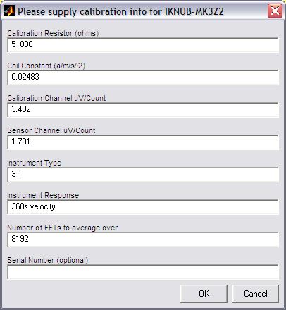Feedback Coil Constant : A constant describing the characteristics of the feedback system. You will need this constant, given in amperes per ms-2, if you want to perform your own calibration calculations (see below.)