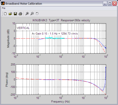 Injecting white noise into the calibration coil gives the response of the whole system, which can be measured using a spectrum analyser.