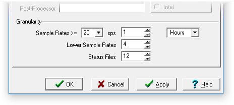 Granularity : This setting allows you to specify how large files are allowed to become before a new one is started, for three different types of stream (high sample rates, low sample rates and status streams).