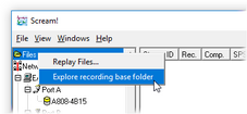 Note: You can quickly browse this directory by right-clicking on the Files section header icon ( ) in the source tree and selecting Explore recording base folder from the context menu: