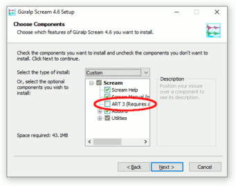 To install the package, download the scream installer using the instructions with which you will have been provided and then run the installer. There is a check-box for ART 3 on the "Optional components" screen: