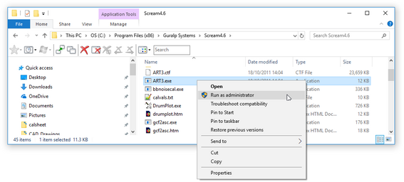 To avoid permissions problems, manually invoke ART once as administrator. To do this, open windows explorer by keying