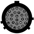 This is a standard 26-pin military-specification plug, conforming to MIL‑DTL‑26482 (formerly MIL‑C‑26482). A typical part-number is 02E‑16‑26P although the initial “02E” varies with manufacturer. Suitable mating connectors have part-numbers like ***‑16‑26S and are available from Amphenol, ITT Cannon and other manufacturers. |