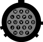 This is a standard 19-pin “mil-spec” plug, conforming to MIL‑DTL‑26482 (formerly MIL‑C‑26482). A typical part-number is 02E‑14‑19P although the initial “02E” varies with manufacturer. Suitable mating connectors have part-numbers like ***‑14‑19S and are available from Amphenol, ITT Cannon and other manufacturers. |