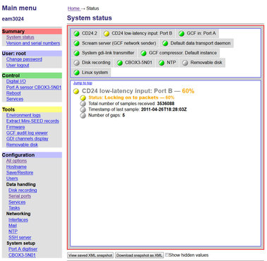 Other menu items in the EAM allow for their control and configuration of the CMG-CD24 digitisers, ports and other connected devices.