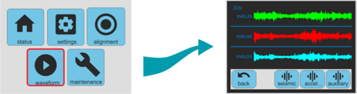 In "seismic" mode, the signals from the main acceleration outputs of the Fortimus are displayed.