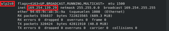 In the example above, the interface has been allocated address 169.254.139.29, which is in the correct network.