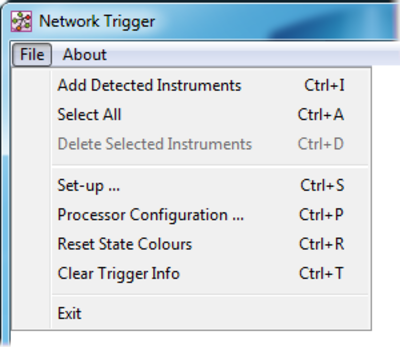 Once the network details have been entered, the Network Trigger application can populate the main grid automatically from the data servers. To enable this, select the menu item File→Add Detected Instruments (or