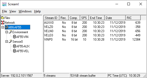 Close the Network Control window and wait until the streams start appearing in Scream's main window: